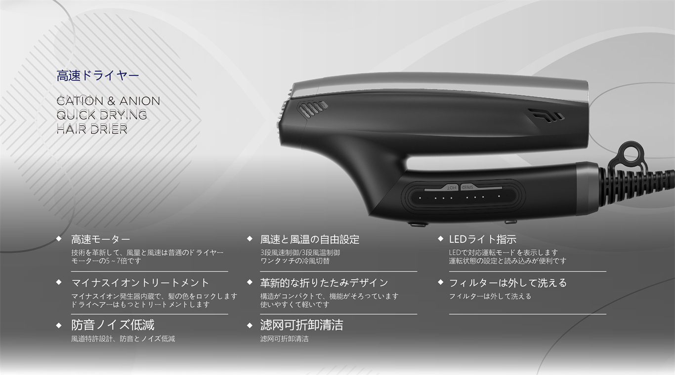 ◆高速モータ110000回転/分は、従来のドライヤーモータの5~7倍です。