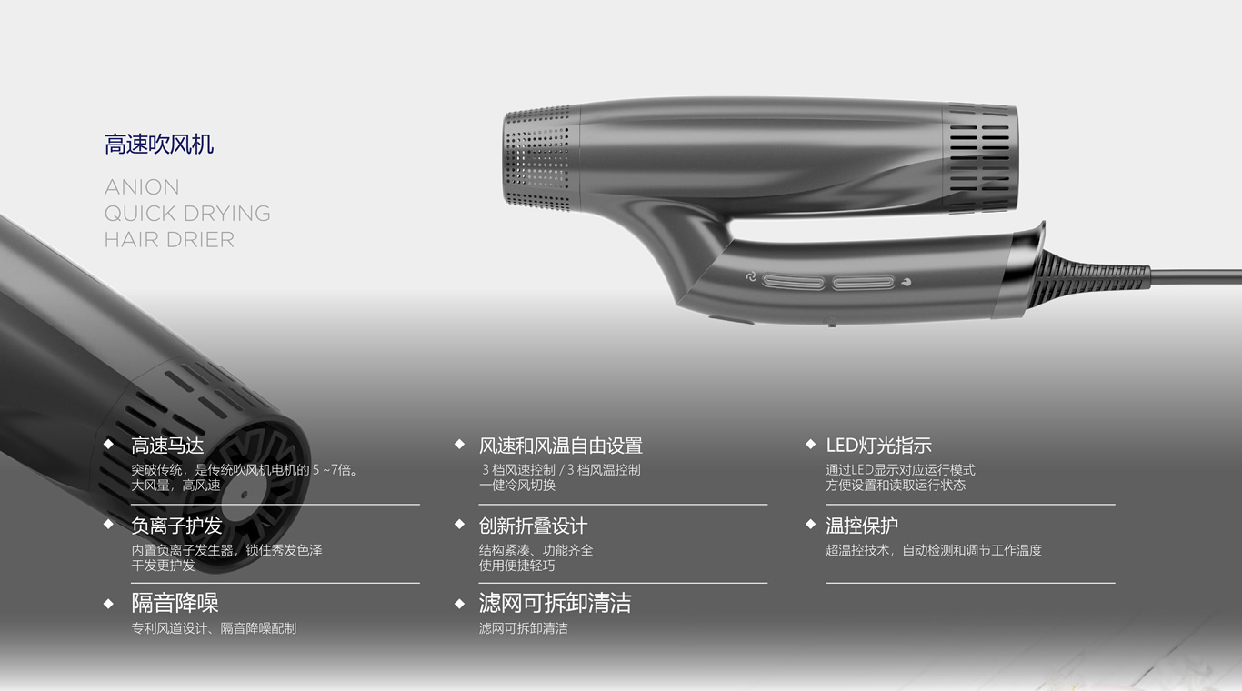 ◆创新设计折叠紧凑、功能齐全干发速度快30%